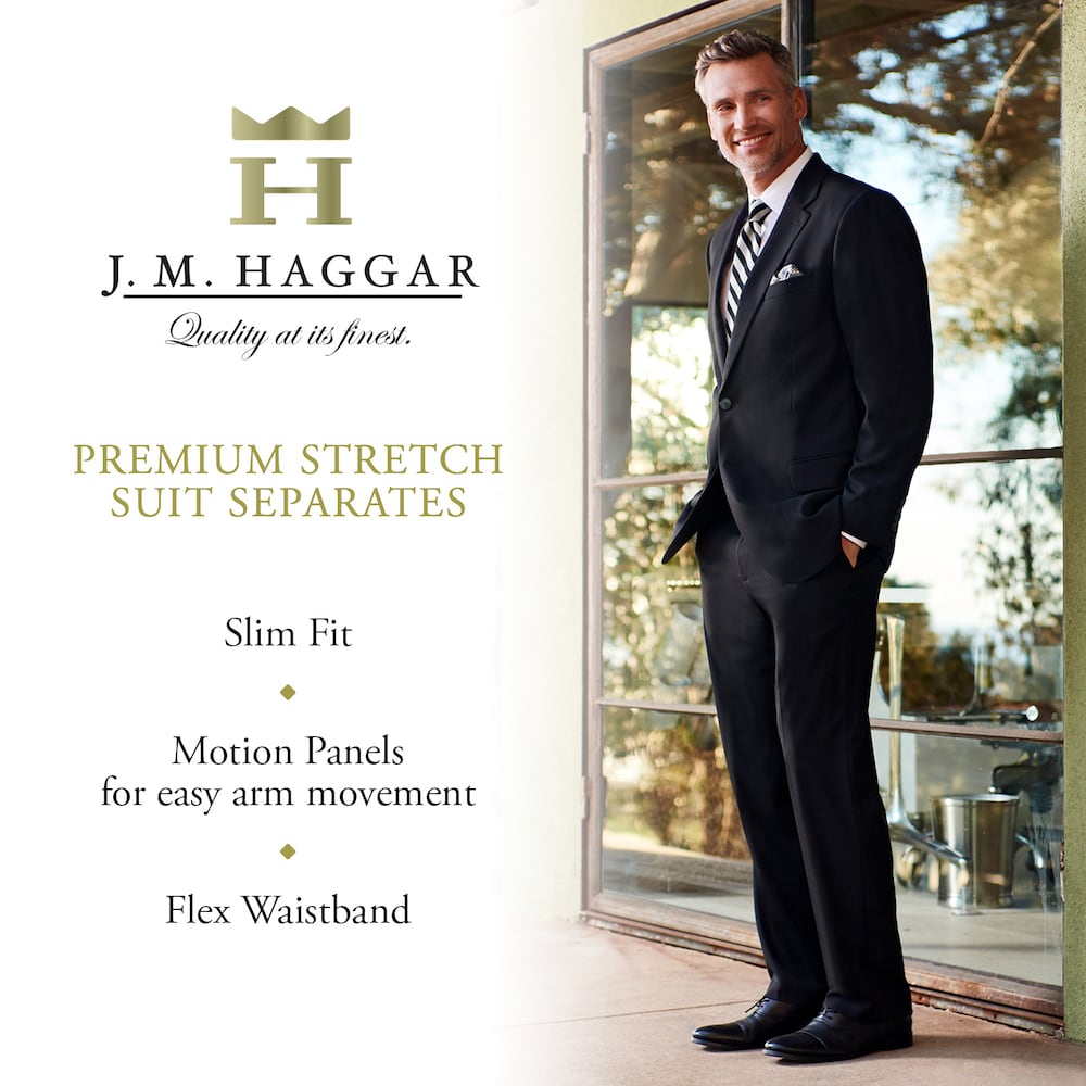 Memorable style. A contemporary slim fit gives this men's Haggar suit coat a strong presence that isn't easy to forget. Stretch fabric blend delivers constant comfort.