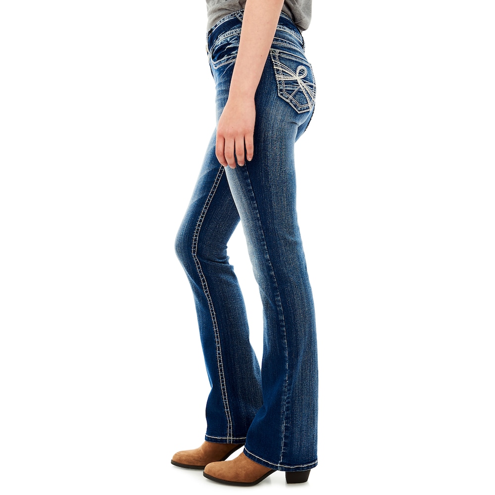 Stylish essential. These juniors' Wallflower bootcut jeans are great for weekend wear. In medium blue wash.